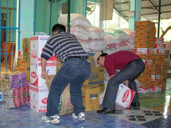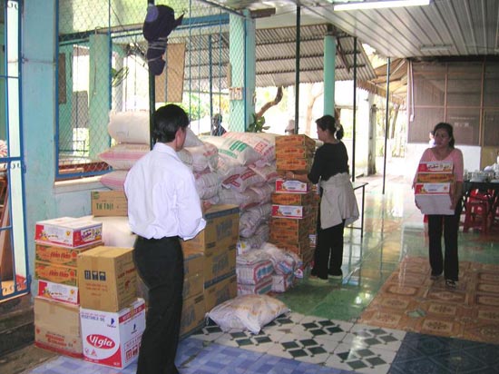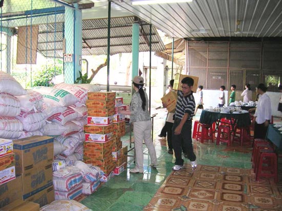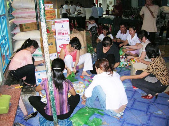 Qua chia se Gom: Gao, Sua, Duong, Dau An, Nuoc Mam, Muoi Iot, Bot Nem, Xa Bong giat,Mi` Goi, Ban