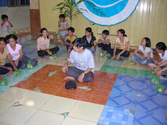 Cac Chi em dang vo nhung phan qua banh lam qua cho cac em