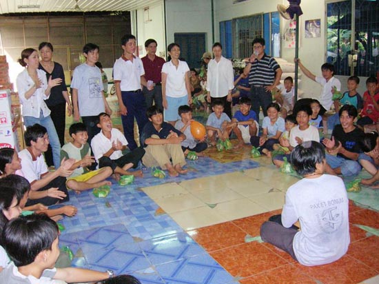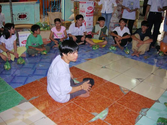 Cac Chi em dang vo nhung phan qua banh lam qua cho cac em