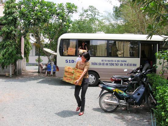 Chi ThuyTien lam nguoi chuyen hang tu xe xuong dat