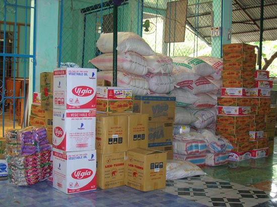 Qua chia se Gom: Gao, Sua, Duong, Dau An, Nuoc Mam, Muoi Iot, Bot Nem, Xa Bong giat,Mi` Goi, Ban